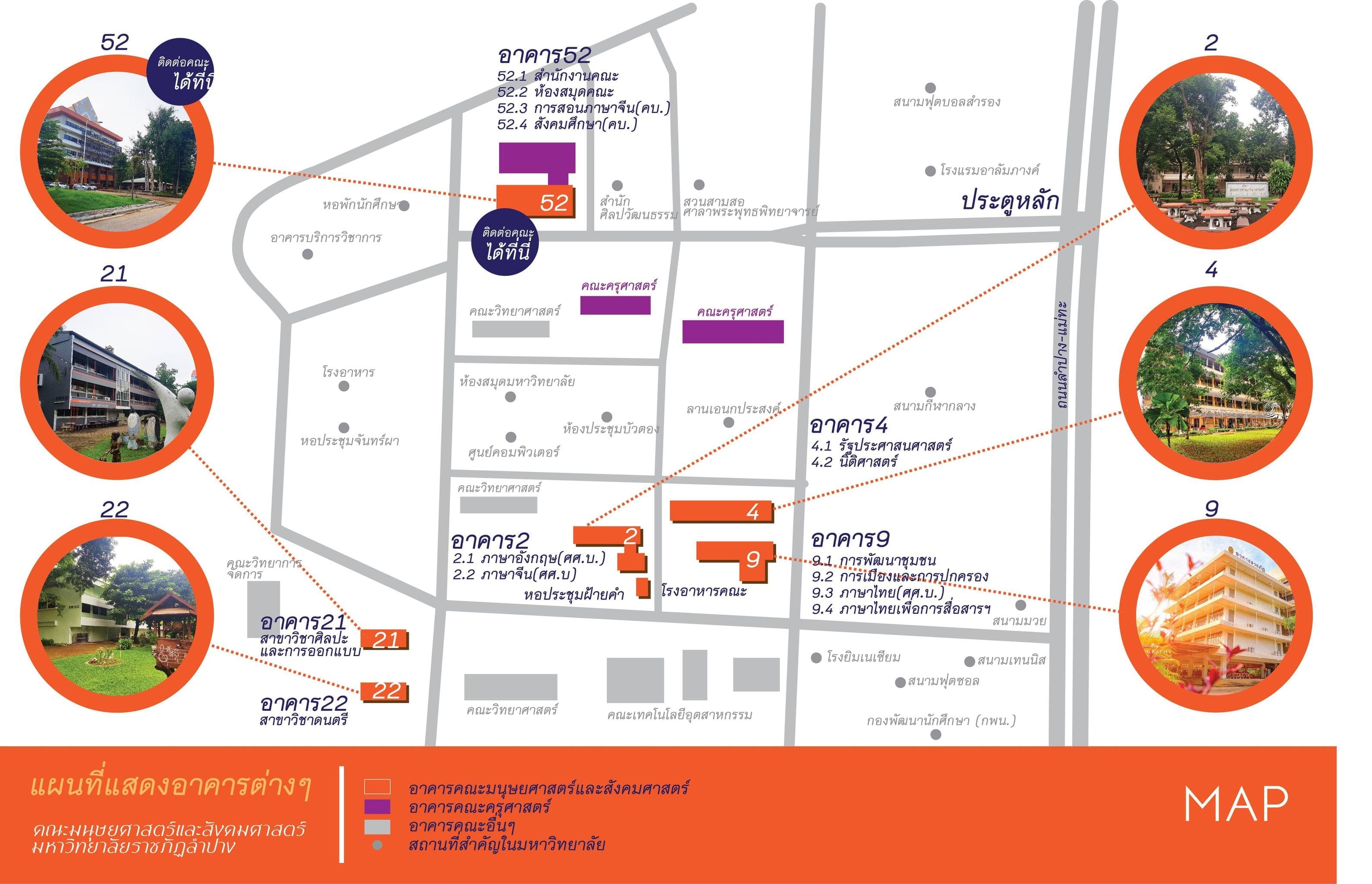 คณะมนุษยศาสตร์และสังคมศาสตร์ มหาวิทยาลัยราชภัฏลำปาง 119 ม.9 ต.ชมพู อ.เมืองลำปาง จ.ลำปาง 52100
